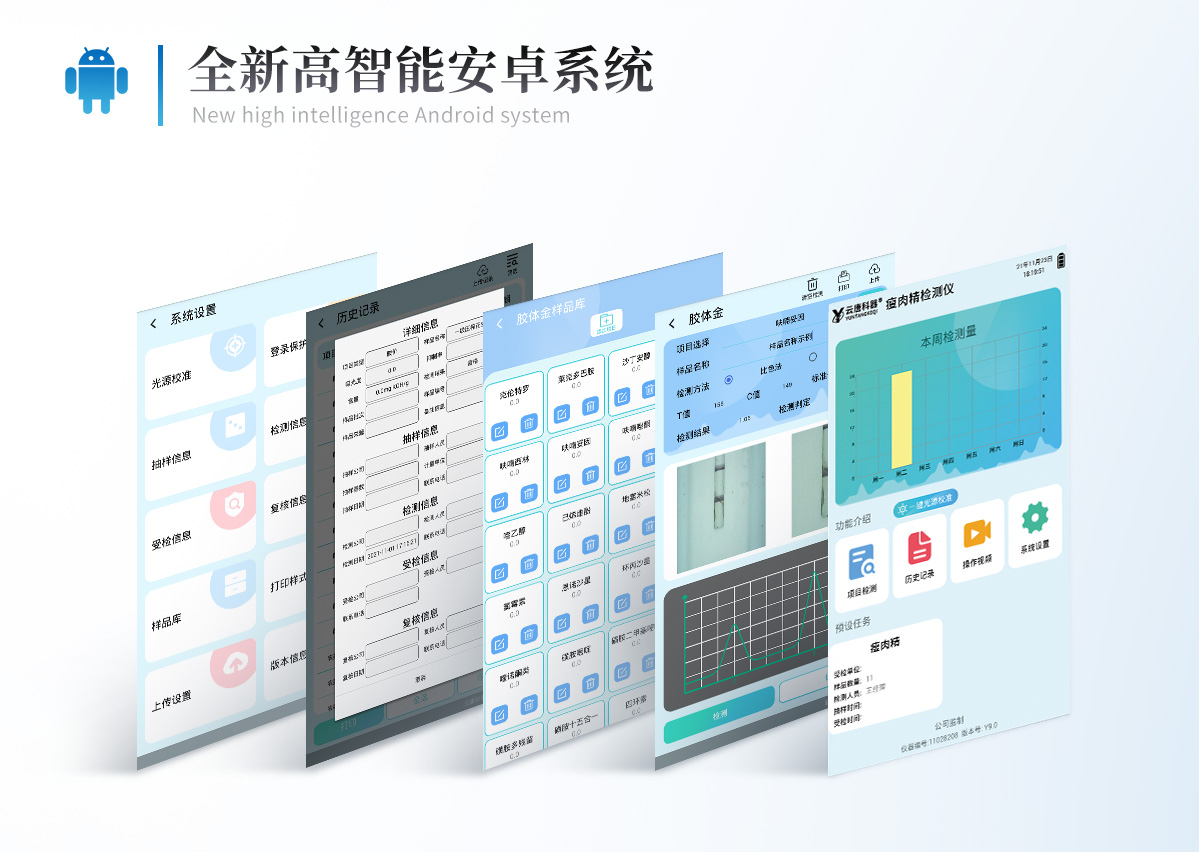 1、儀器采用10.1英寸液晶觸摸屏顯,搭配運行安卓智能操作系統(tǒng),主控芯片采用ARM Cortex-A7,RK3288/4核處理器,主頻1.88Ghz,運轉速度更快速,性能更強。